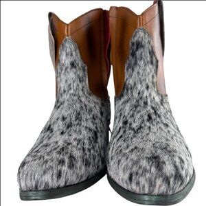 Alcala's Johnny Black Brown Cow Hair-On-Hide 100% Leather Cowboy Boots Size 7.5