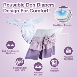 Premium Washable Two Tone Ruffles & Bow Female Dog Diapers 2 Pack Size: Med. New