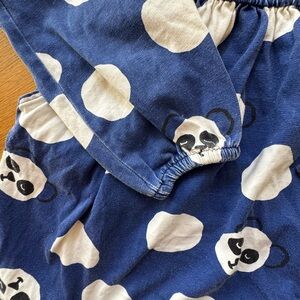 Hanna Andersson Girls Panda Print Play Dress 120 6-7 Blue Long Sleeve Cotton
