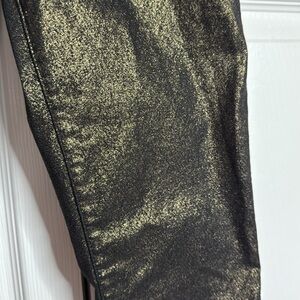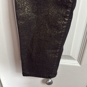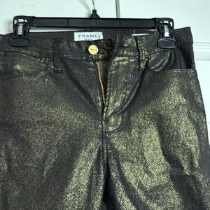 Experience the perfect blend of style and sophistication with these Frame Denim skinny jeans. Featuring a striking black and gold color palette, these jeans boast a unique metallic finish that adds a touch of glamour to any outfit. The sleek, slim-fit design ensures a flattering silhouette, making them an ideal choice for both casual and dressy occasions.