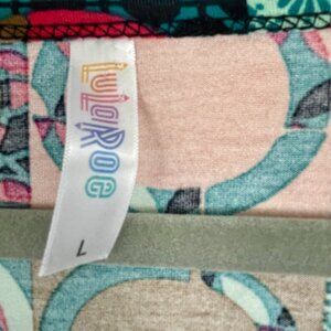 Brand new with tags — an unworn and untouched piece from the popular LuLaRoe Classic T collection. This size Large (12–14) tee features a bold, all-over geometric print in vibrant red, teal, peach and olive tones, making it a statement piece with versatile styling potential. The silhouette offers the classic smooth-drape knit fit with a high round neckline, short sleeves, and a slightly longer back hem — consistent with the style details described by the brand.