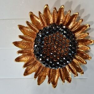 Elegant sunflower brooch featuring gold petals and a black & gold center. Perfect for adding a touch of nature-inspired charm to any outfit! NWT. Bundle with another item for a bundle discount!!