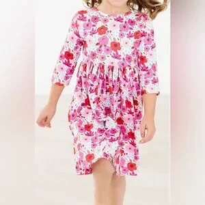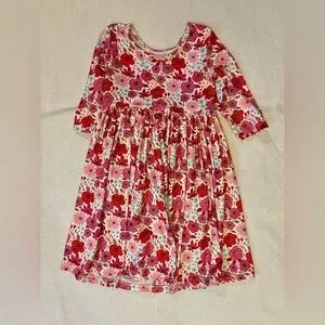 Mila & Rose Secret Garden 3/4 Sleeves Pink and Red Floral Twirl Dress