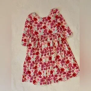 Delightful kids dress adorned with a charming floral pattern in pink and red.