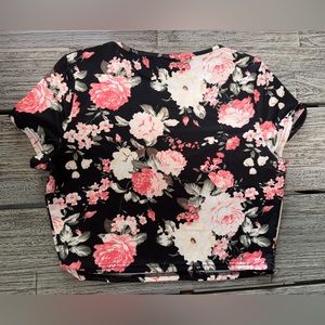 Women’s Black Floral Stretchy Crop Top, Sz LARGE