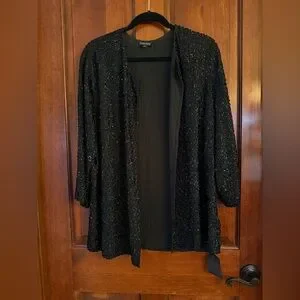 Naeem Khan Timeless Women's Black Fully Beaded Silk Jacket size L