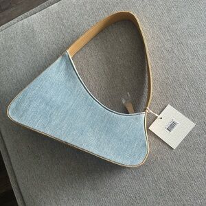 Stylish mini bag by Rachel Zoe. Features a blue Jean body with tan accents. Perfect for any occasion.
