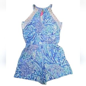Lilly Pulitzer NWT Lala Romper Haven Hey Hey Soleil Blue White Size Large 001702