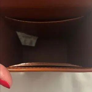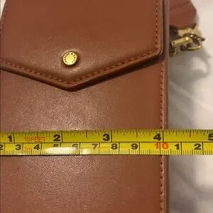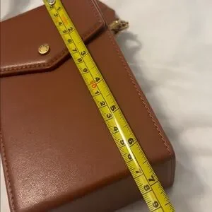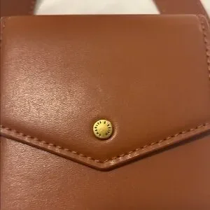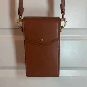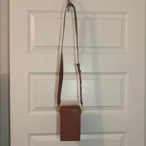 Stylish brown leather crossbody bag perfect for everyday use. Features a sleek design with a secure clasp. Ideal for keeping essentials close at hand. This is used has some wear only callout one side has crease slightly crushed but still in great shape very limited use