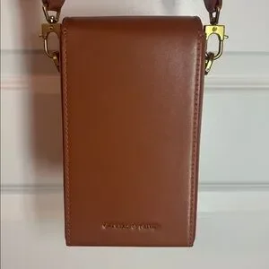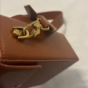 Charles & Keith Tan Brown Leather elongated Crossbody Bag magnetic closure