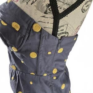 Floreat by Anthropologie Embroidered Polka Dot Blue Gold Strapless Dress Size 0