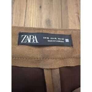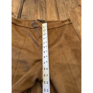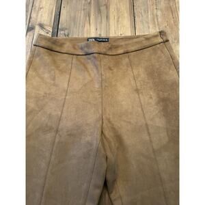 Zara Women’s Vegan Faux Suede Straight Leg Pants Size XL Ankle Zip Slacks