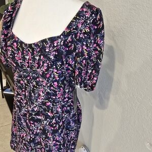 French connection Short puff sleeves and a sculpted sweetheart neckline add dreamy touches to this floral-print minidress.