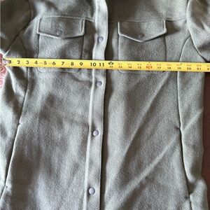 Stay stylish and warm with this Sage/Olive Green Shacket. This versatile wool blend unlined piece is perfect for any occasion this Fall, offering both comfort and a sleek look. Measurements in photos.