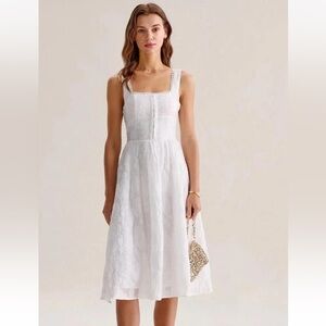 BRAND NEW RIHOAS White Jacquard Shirred Slip Midi Dress M