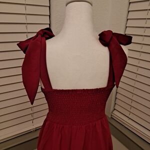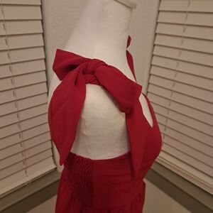 Step out in style with this chic red midi dress, featuring elegant bow-tie straps. Perfect for any occasion, this dress adds a pop of color to your wardrobe.