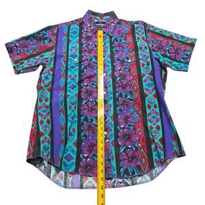 Vintage Wrangler Men Aztec Flower Short Sleeve Shirt Size Large Western Retro