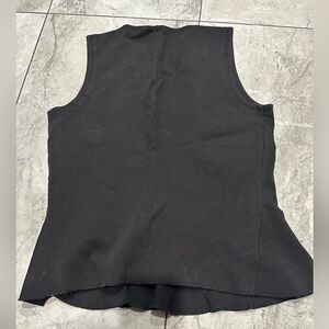 Chic black sleeveless blouse. Features a stylish peplum hem. Perfect for versatile styling.