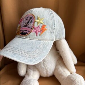 This stylish denim cap features colorful patches with a Nashville theme. Perfect for those who love vibrant designs.