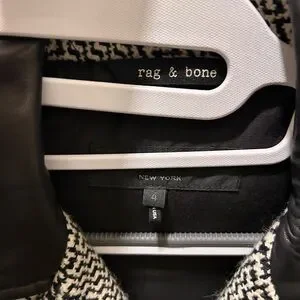 $895 Rag & Bone Bowery Tweed Jacket Removable Sleeves Wool and Lamb Leather
