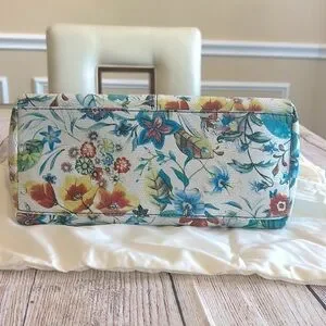 Bright floral pattern. Removable strap. Comfortable handles.