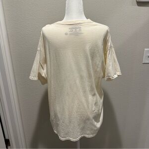 Step out in style with this cream graphic tee featuring an iconic print. Perfect for casual wear.