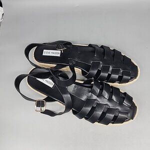 NWOB Steve Madden Marlin Black Leather Sandals Size 11 Shoes
