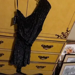 Retrofete Black Sparkle One Shoulder Dress