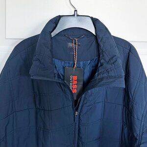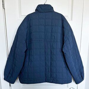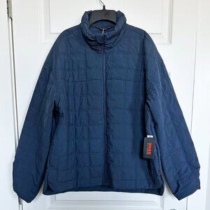 Brand new Bass Outdoor Spring Puffer Jacket. This relaxed, oversized jacket offers an effortless layering option when unpredictable weather arrives. Features a stand-up collar, drop shoulders, long sleeves, elasticated cuffs, full zip closure, large pockets, curved side slits, quilted finish, lightweight insulation, and water repellant fabrication. Color: Big Dipper (Navy Blue). Size: Medium. Fit: Oversized. Material: 100% Polyester. Excellent condition. Never worn. New with tags.