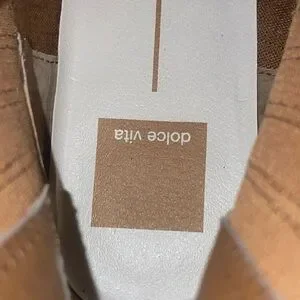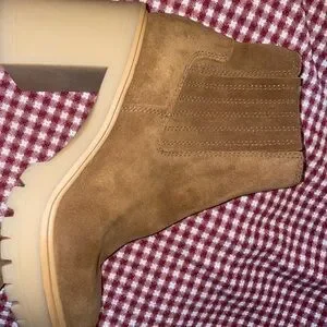 Size 9.5, new without tags, soft & supple yet durable suede, chunky 4” heel, nice fall caramel color, stretchy sides for easy pull on but bounces back to secure on feet, a classy and chic addition to your fall and winter wardrobe.