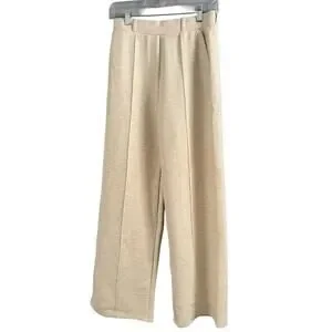 NWT OGL FuzzLuxe Beige High Rise Straight Leg Pull On Pleated Pants Medium