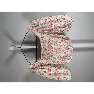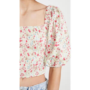 This stylish crop top features a charming floral print with puff sleeves and a smocked bodice for a comfortable, flattering fit.