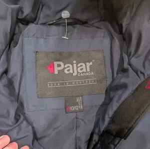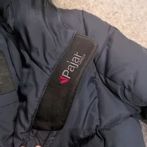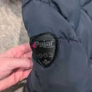 This girls Pajar navy puffer coat features multiple pockets inside and out, removable fur, and very cold weather temperatures reaching -30 Celsius. In excellent condition, with only the tiniest wearing mark on the zipper handle.