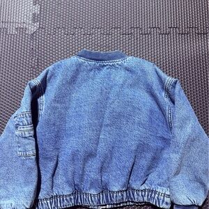 Trendy blue jean jacket with front pockets. Comfortable and stylish for everyday wear.