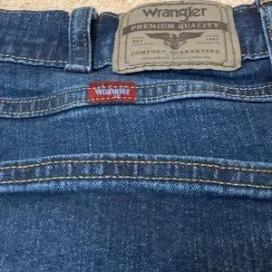 Wrangler straight fit dark wash denim jeans, men’s size 34x32. Nice dark wash that goes with everything. Classic style! Workwear / casual vibes. In good condition with no rips, holes, or stains.