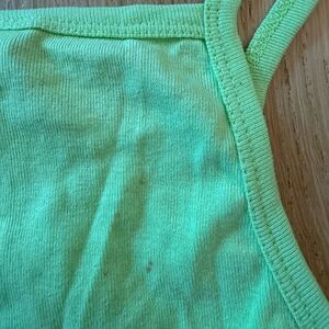 Vibrant neon green tank top from New Orleans with thin straps. Perfect for casual wear. In a size small. Note that there is a small stain on the back of the shirt.
