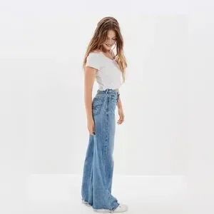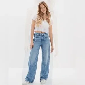 American Eagle Super High Rise Baggy Wide Leg Regular Medium Bright Indigo 6