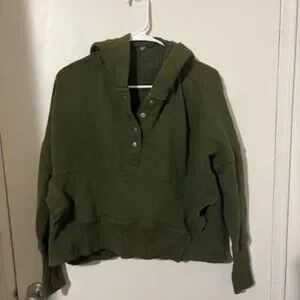 Mad Fabriq Olive Green Button-Up Hoodie Sweatshirt – Approx. M/L