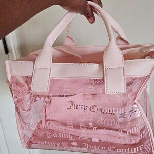 Juicy Couture Heart Powder Blush Beachin Large Tote with Matching Pouch NWOT