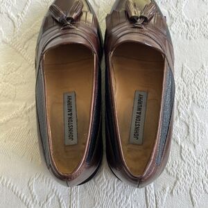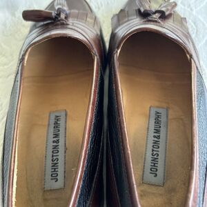 Johnston & Murphy Tassel Kiltie Loafer Dress Shoes. Men's 8.5M. Black/Mahogany Leather. Made in Italy. Pre-owned condition with light wear on soles.