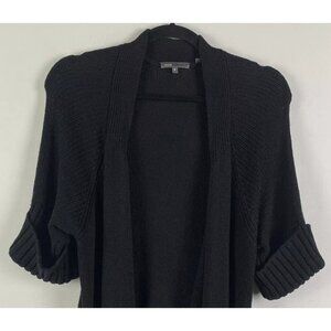 VINCE Black Wool Blend Short Sleeve Knit Open Cardigan Sweater