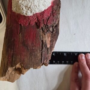 Paper Mache Santa on Wood Bark Rustic Cabin Decor Hand Painted Christmas Holiday