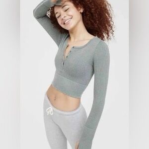 NWT OFFLINE by Aerie Light Sage Waffle Knit Long Sleeve Crop Top🍃