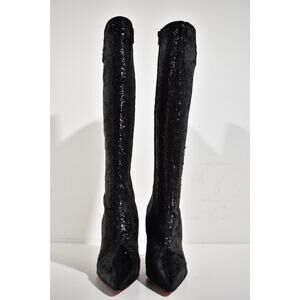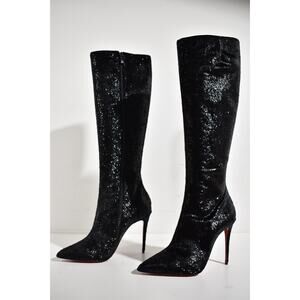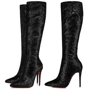 Christian Louboutin Kate Botta 100 Black Velours Papillon Knee Heel Boot 38.5
