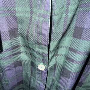 Ruffle accent and 1/2 button down with green tassels