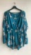 Free People Blouse Floral Top Turquoise Blue Medium Tuscan Peasant Boho Printed