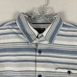 Grizzly Mountain Men's Short Sleeve Woven Shirt L White, Blue and Gray Stripes