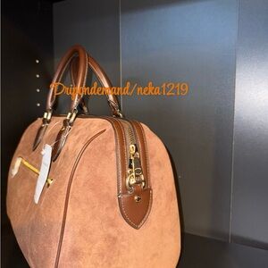 Elevate your style with this elegant Coach handbag. Crafted in rich brown suede, it offers a sophisticated look for any occasion. Perfect for the modern woman.