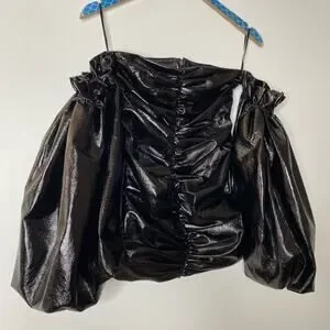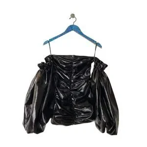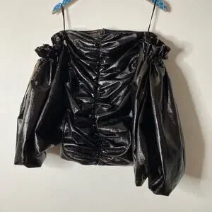ROTATE BIRGER CHRISTENSEN Black Phoebe Vinyl Off Shoulder Mini Dress
