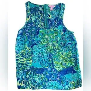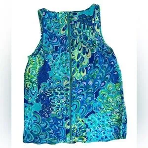 EUC; racer back silk tank in “Lilly’s lagoon”, gold zipper up the back. Stunning colors!